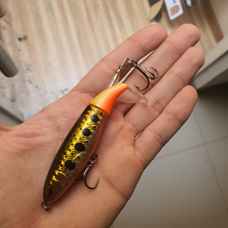 Super Realista, ela simula um pequeno peixe caçando na superfície, atraindo cardumes e despertando o predador mesmo quando está manhoso.