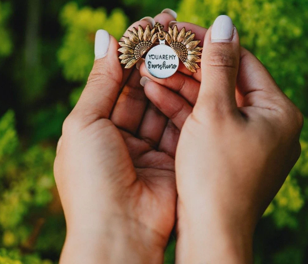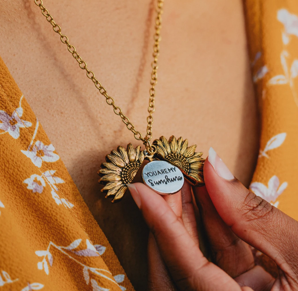 ★ Colar com medalhão de girassol gravado You are My Sunshine